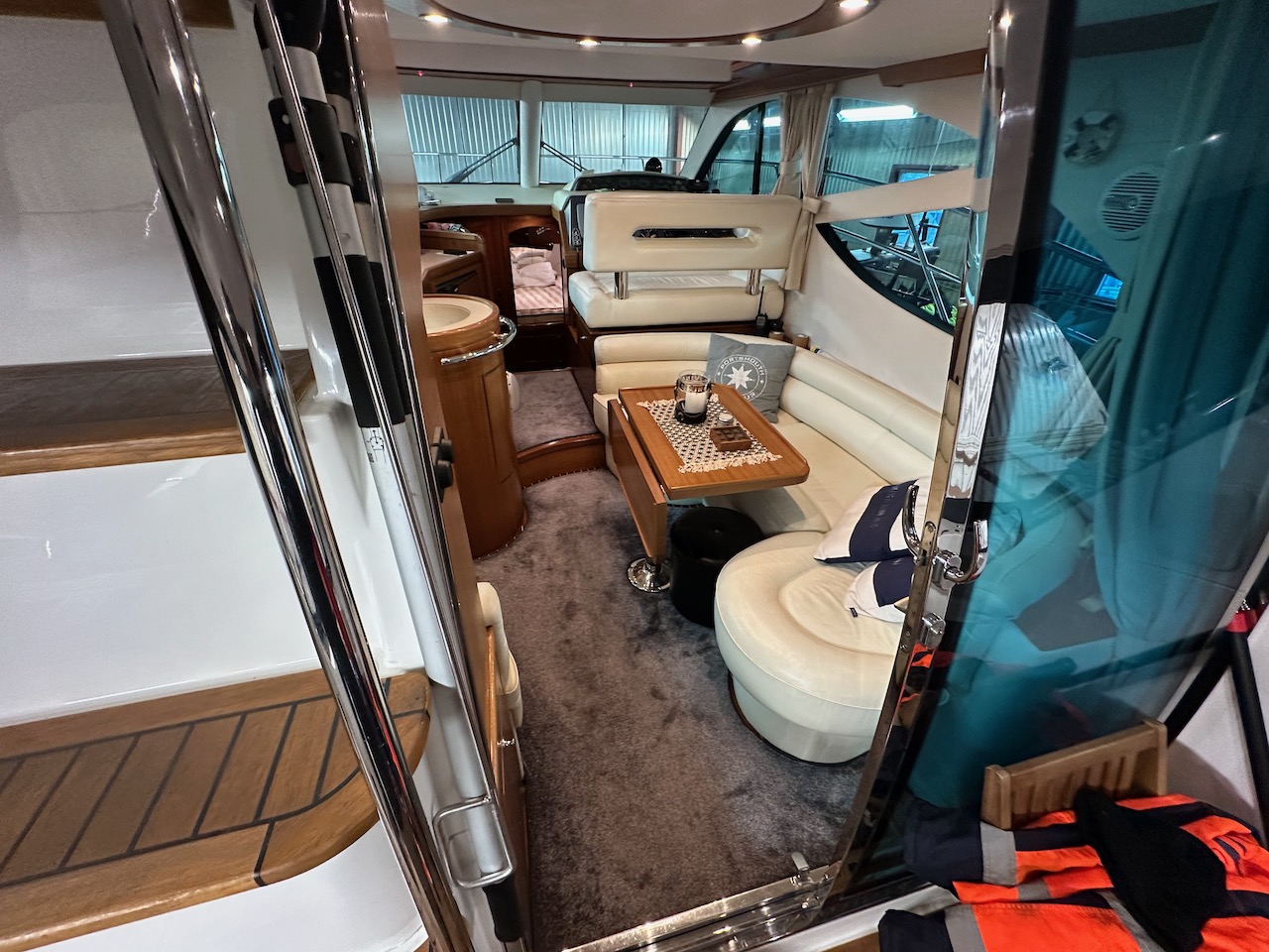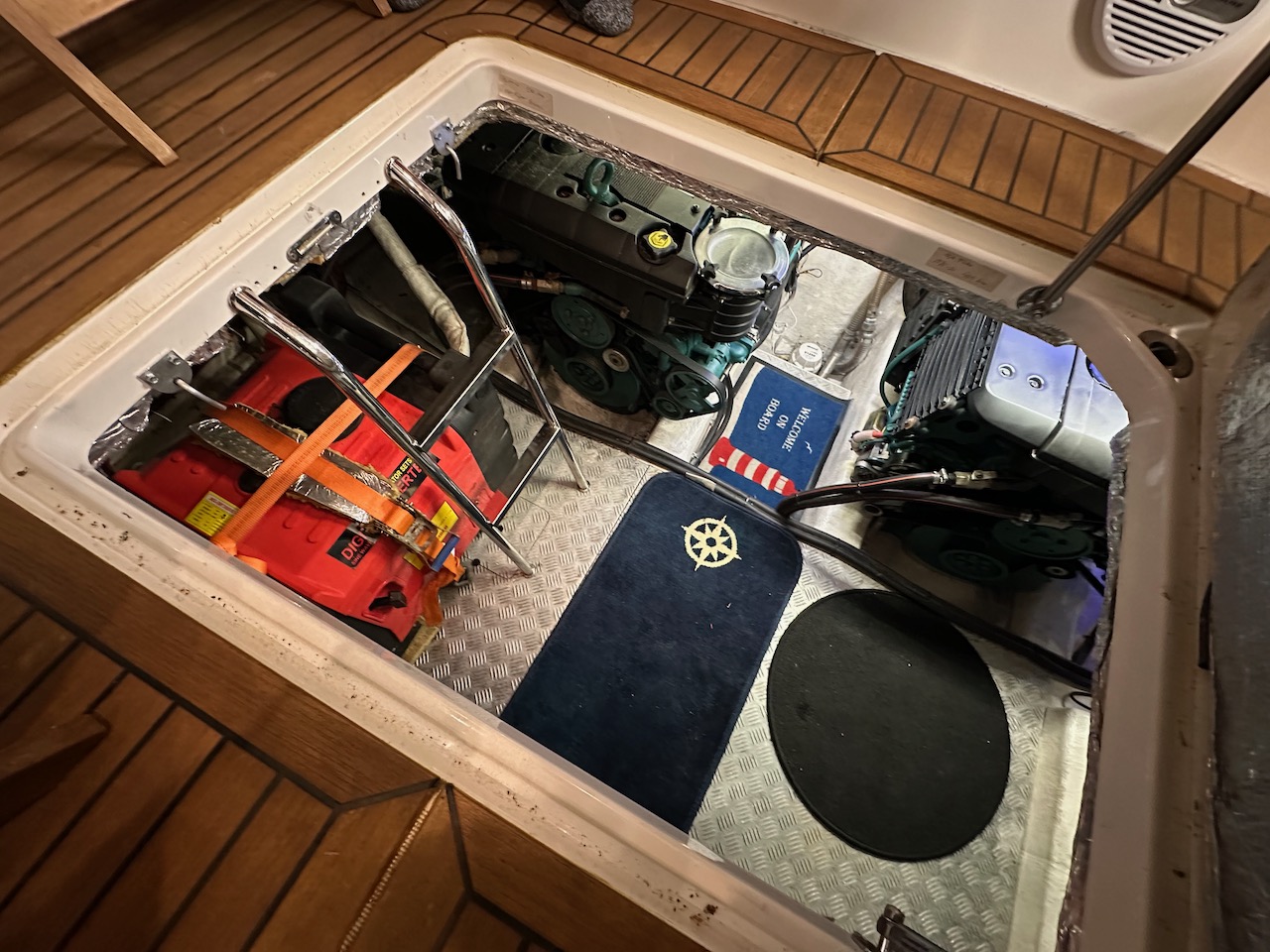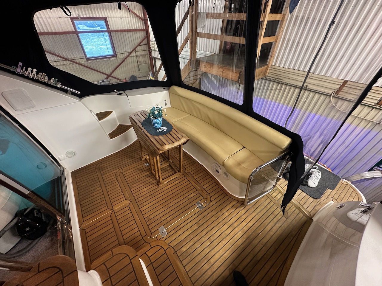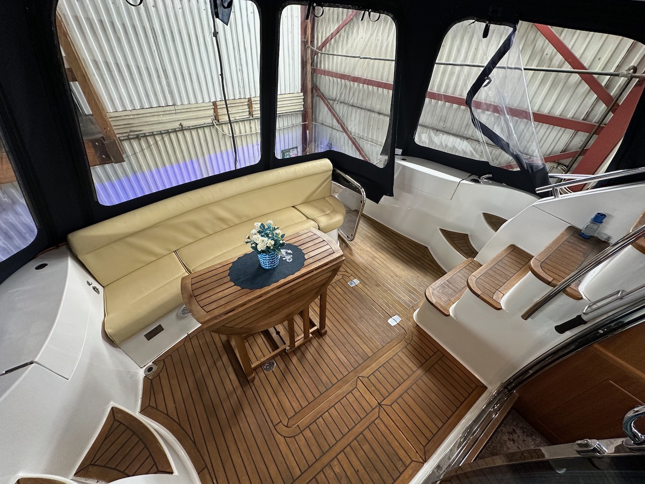 Teakdurk inne i båten