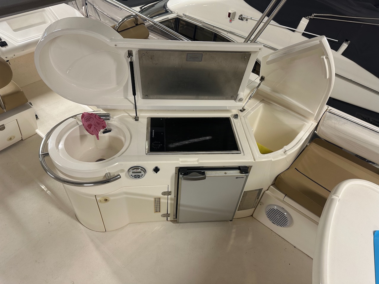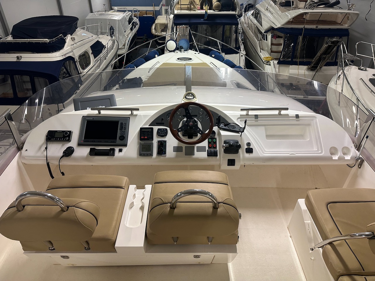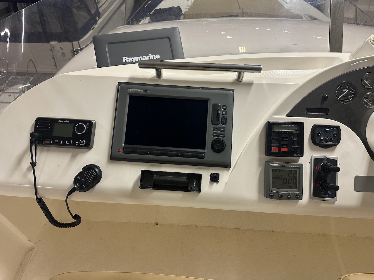 Raymarine C120 plotter i cockpit och på flybridge